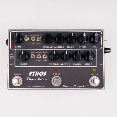 The ETHOS tone stack is extremely diverse in nature. If you are trying to obtain a smoother or silkier overdrive tone, turn down the middle control. Some great tones can be had by setting it between 8:00 and 10:00. The higher the middle control is set, the more aggressive tone you'll get.